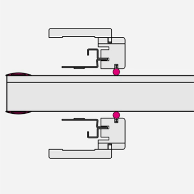 • Уплотнители и ответные части, которые активируются при закрытии звукоизоляционной двери, герметизируя вертикальные части дверного проема, предотвращая проникновение звука.