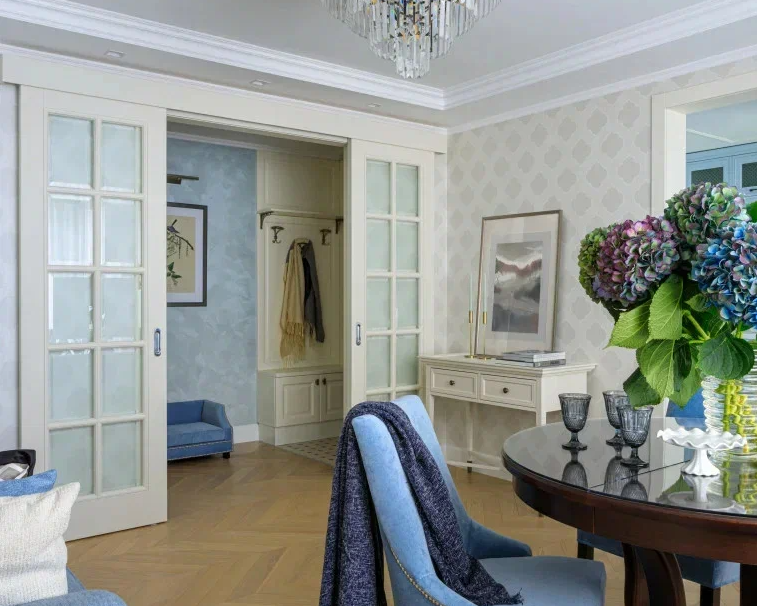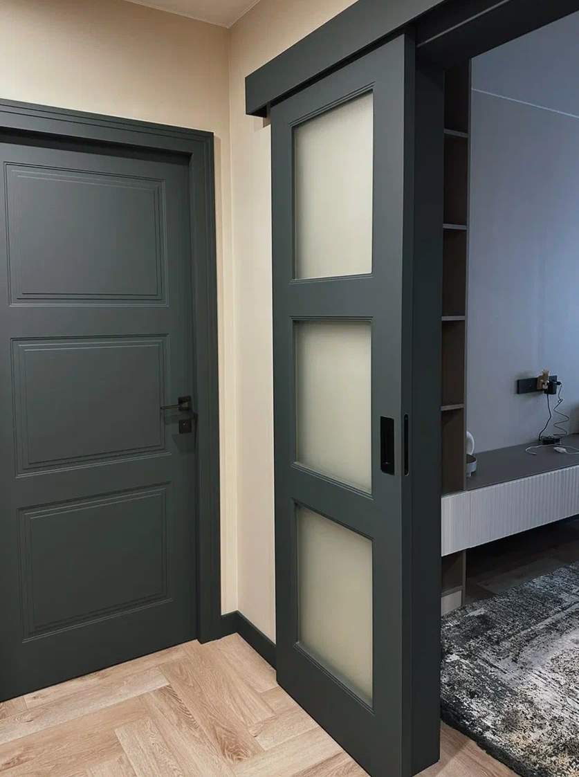 • Экономия пространства. В отличие от распашных дверей, двери-купе не требуют места для открывания.